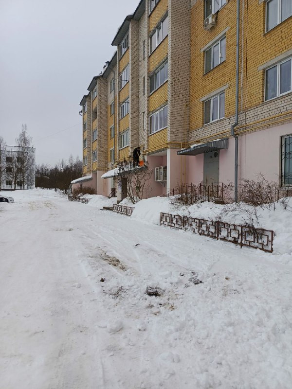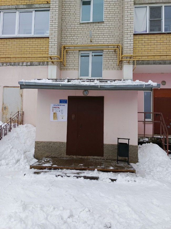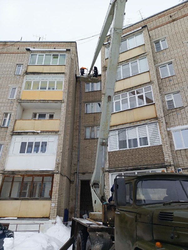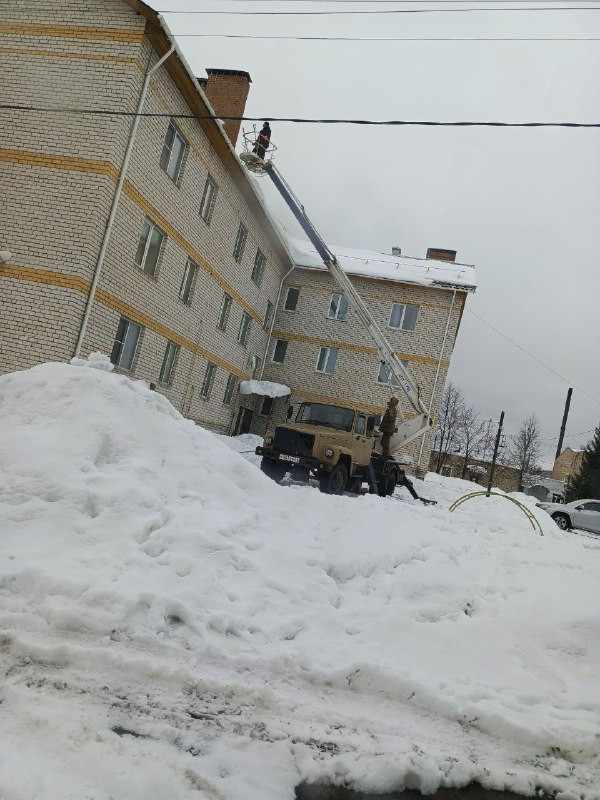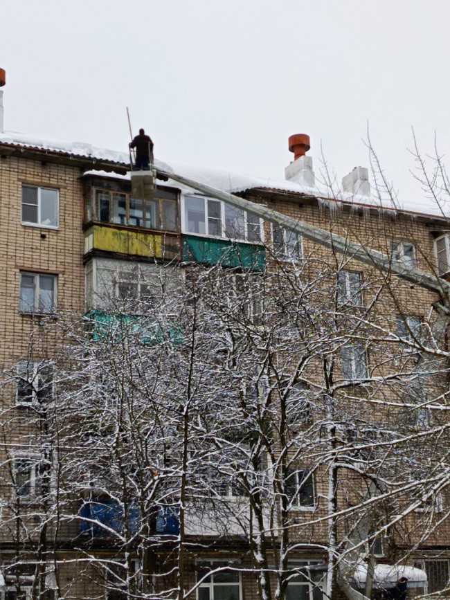 На текущей неделе на ряде домов произведена очистка кровли и козырьков над подъездами от снега и наледи