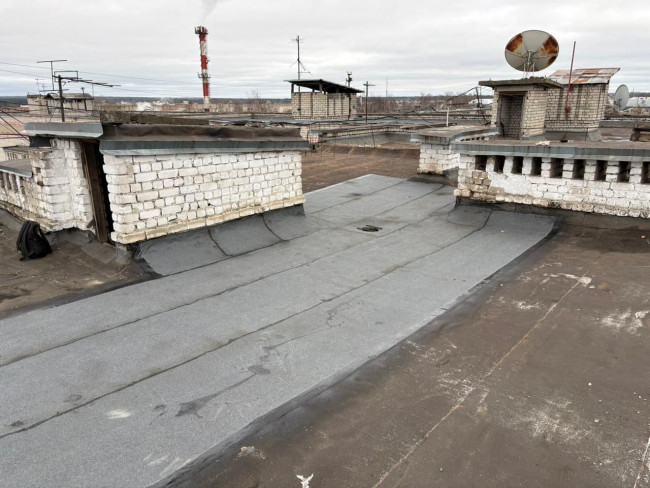 Частичный ремонт кровли над первым подъездом в доме № 64 по улице Октябрьской революции