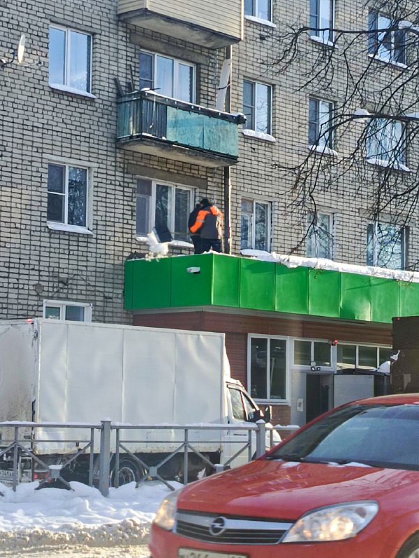 На текущей неделе производится очистка кровли от снега и наледи